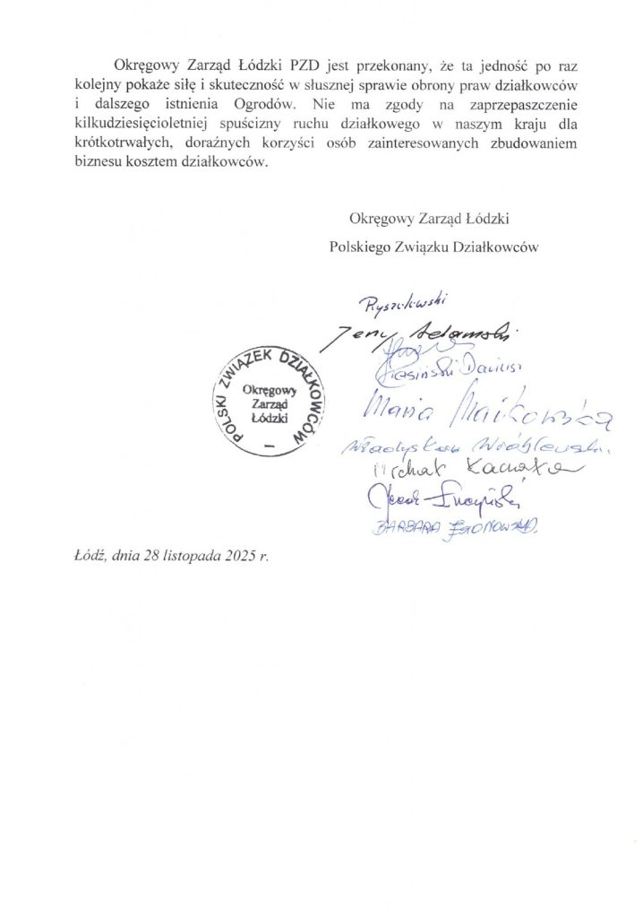 • STANOWISKO KRAJOWEJ KOMISJI REWIZYJNEJ POLSKIEGO ZWIĄZKU DZIAŁKOWCÓW w WARSZAWIE Z DNIA 1 GRUDNIA 2025 ROKU w sprawie tendencyjnych działań zmierzających do rozbicia struktur Polskiego Związku Dzia – 01.12.2025 →
