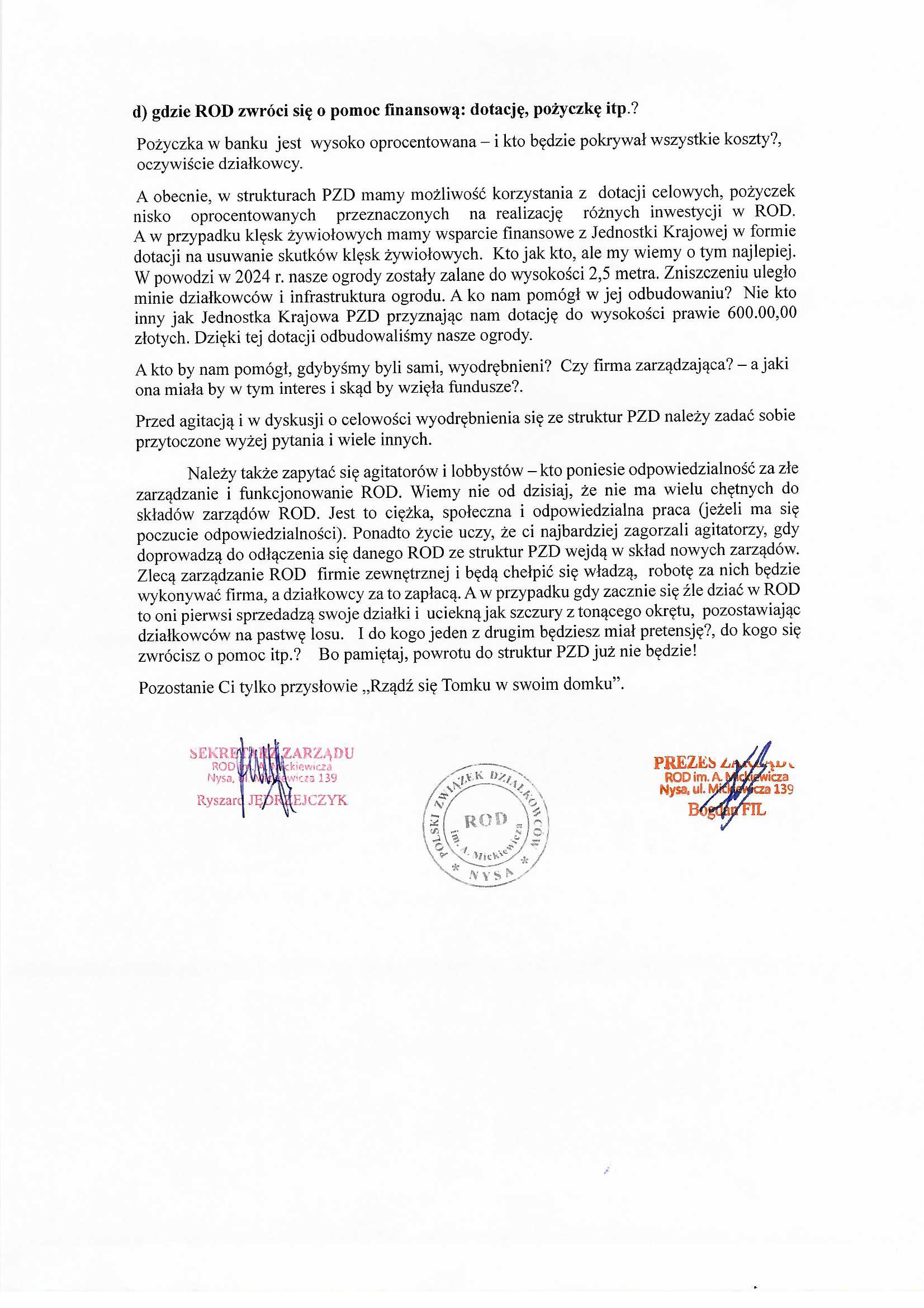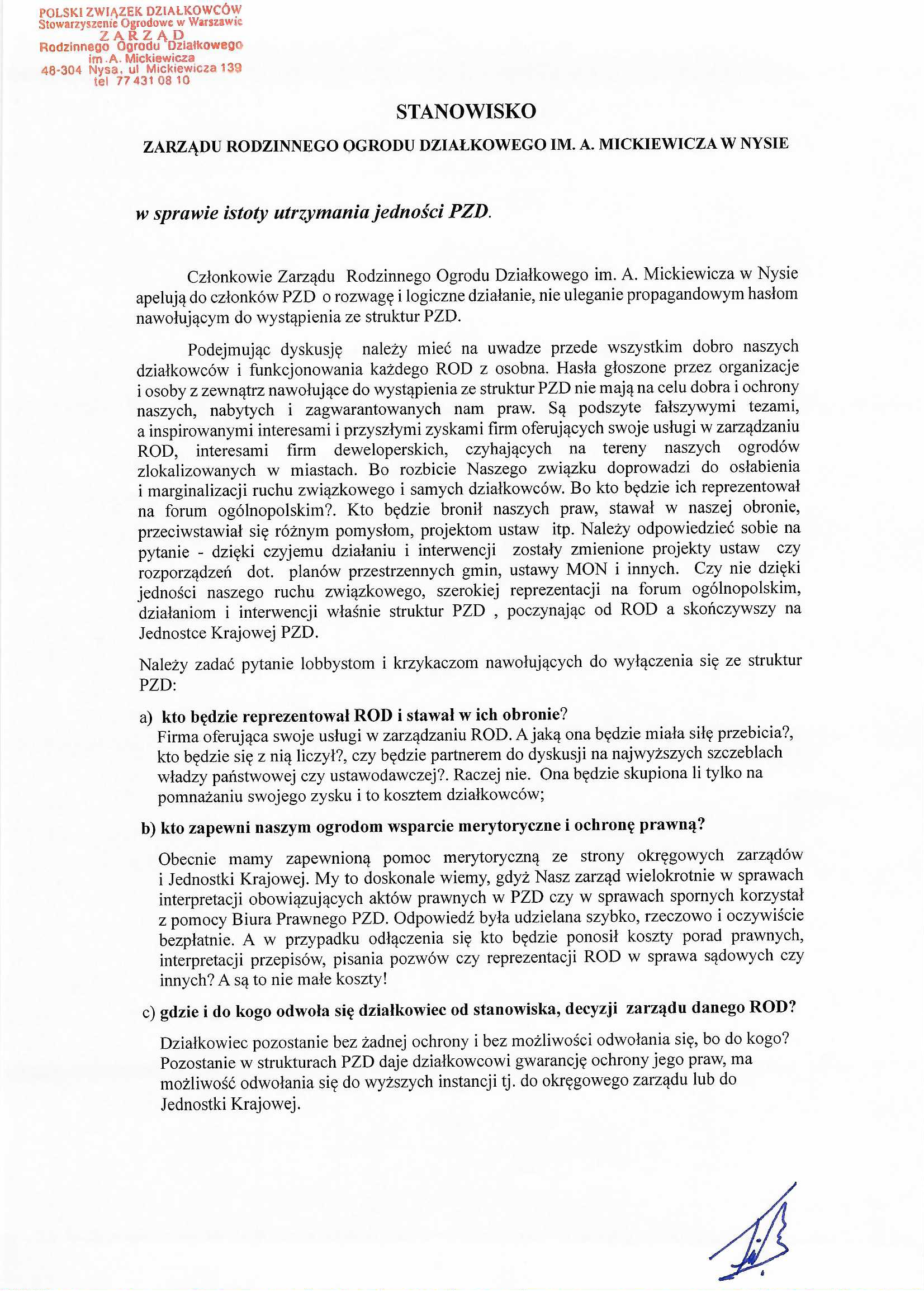 Aktualności Listy, Komunikaty STANOWISKO Zarządu ROD im. A. Mickiewicza w Nysie w sprawie istoty utrzymania jedności PZD. 20 stycznia 202620 stycznia 2026 OZO PZD