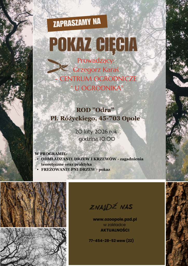 Aktualności Szkolenia Szkolenie z cięcia drzew w ROD „Odra” w Opolu w dniu 20 lutego 2026 roku o godzinie 10.00, które poprowadzi Grzegorz Karaś – serdecznie zapraszamy 17 lutego 202617 lutego 2026 OZO PZD
