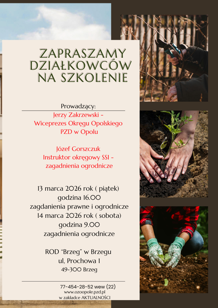 Aktualności Szkolenia Zapraszamy działkowców na szkolenie w ROD „Brzeg” w Brzegu 13-14 marca 2026 roku 4 marca 2026 OZO PZD